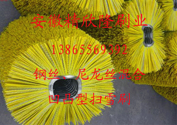 毛刷廠家!掃雪刷輥價格實惠!掃雪刷輥質量保證!產品適用于德國施密特、威海廣泰、武漢九通、沈陽德通、美國MB掃雪車、山東匯強等廠家生產掃雪車的掃雪滾刷更換,本公司產品性能可靠,可為各大掃雪車廠家的配套,產品銷往北京、哈爾濱、沈陽、長春、新疆等地,也為國內各大飛機機場服務。本產品采用進口尼龍刷絲、鍍鋅鋼絲和PP絲等材質,強度高、抗磨損、耐腐蝕、特別是能在超低溫氣候下工作。主要用于國內外各種掃雪車,裝載車,滾刷片常用規格有:內徑128,外徑500,內徑162,外徑550,內徑165,外徑560,內徑205,外徑660,內徑255,外徑800,內徑300,外徑800,內徑500,外徑1500等規格,可按客戶要求,刷絲有PP絲和PP絲和鋼絲混合。